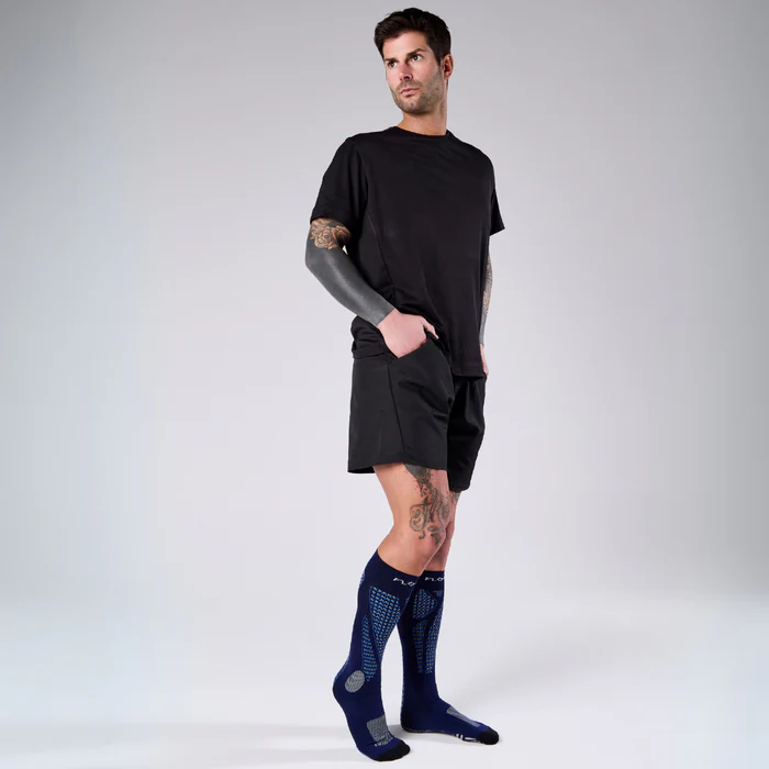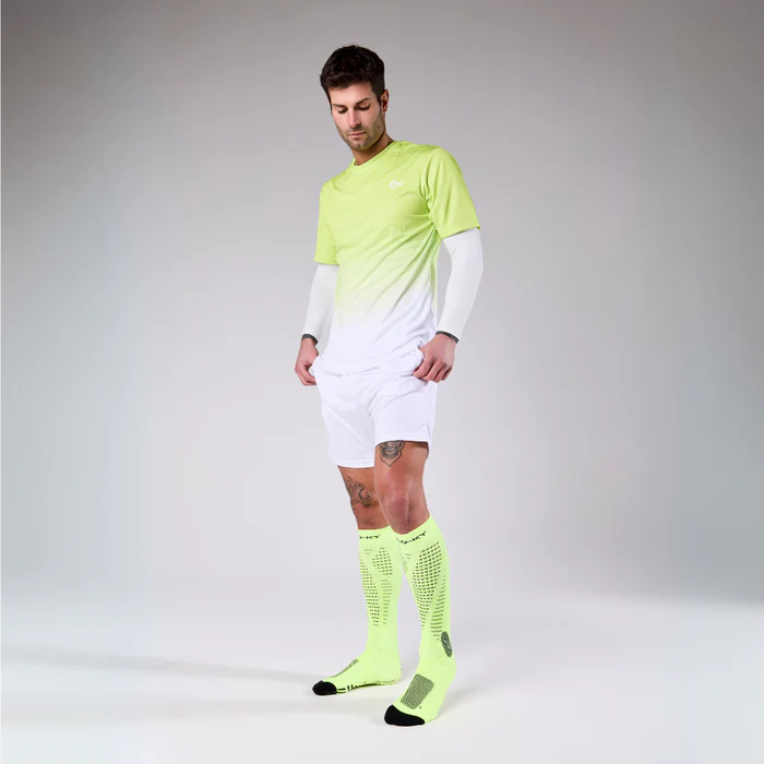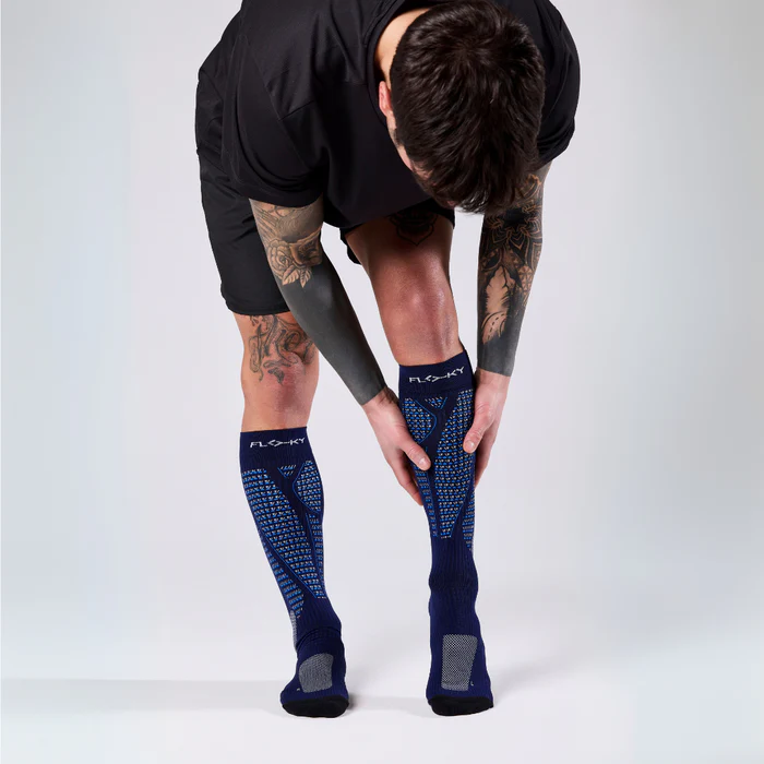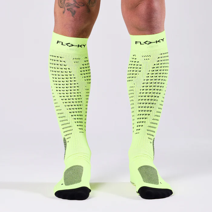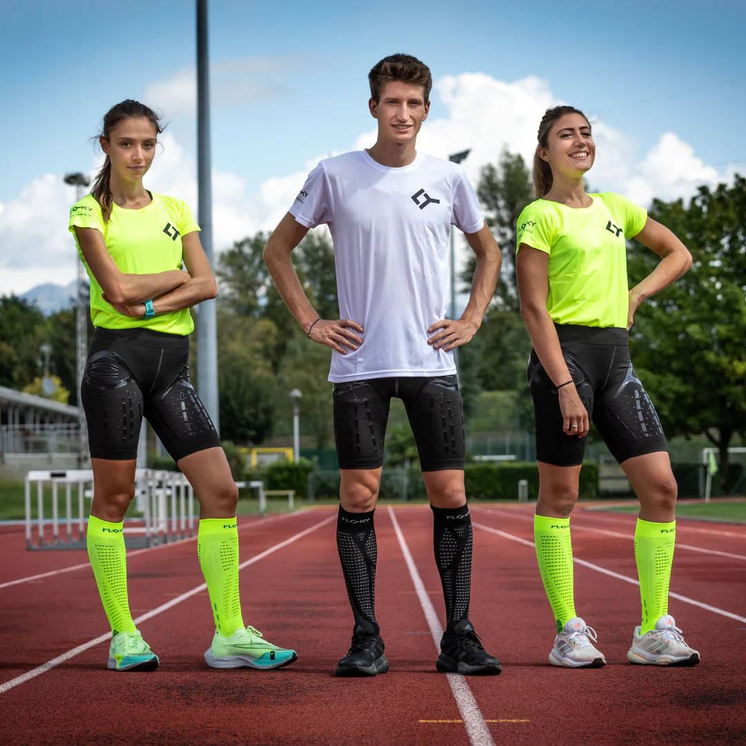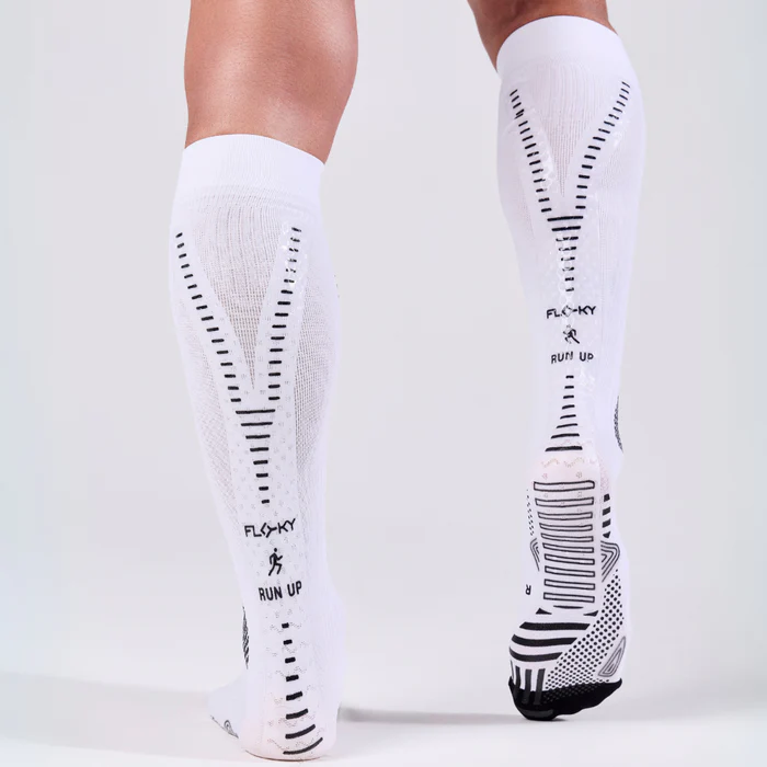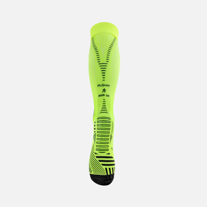 RUN UP LONG is the running-specific sock, designed by FLOKY to provide an improvement support of all biomechanical functions related to the foot and leg while allowing protection from injuries and wear, speed of recovery, increased performance and environmental protection.